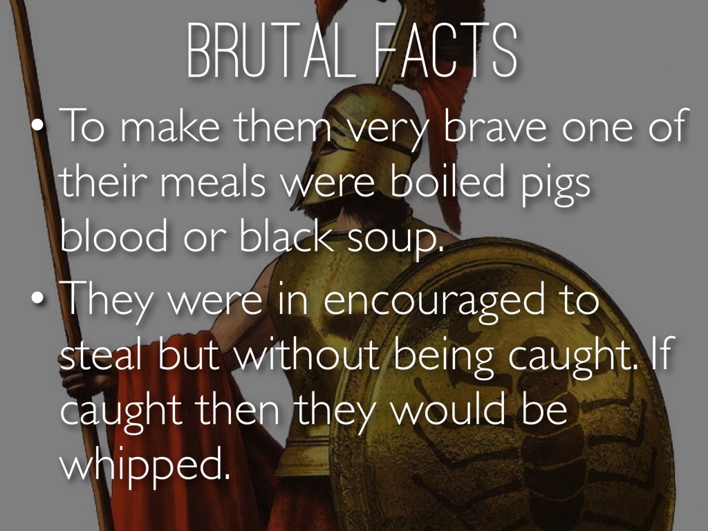 To make them very brave one of their meals were boiled pigs blood or black soup.