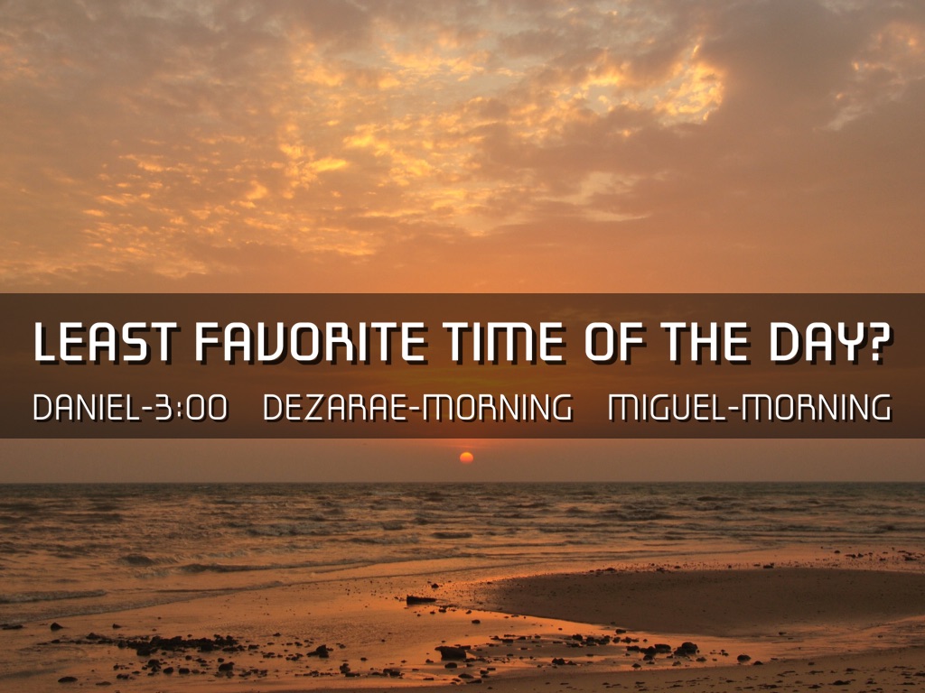 DANIEL-3:00 DEZARAE-MORNING MIGUEL-MORNING