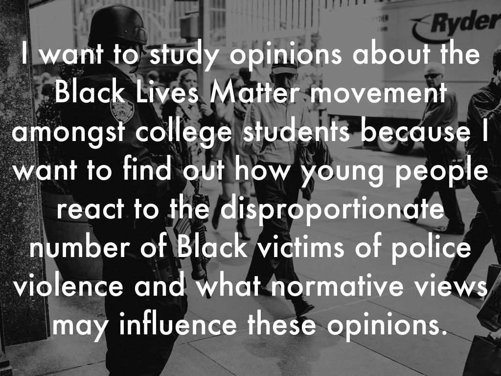 I want to study opinions about the Black Lives Matter movement amongst college students because I want to find out how young people react to the disproportionate number of Black victims of police violence and what normative views may influence these opinions.
