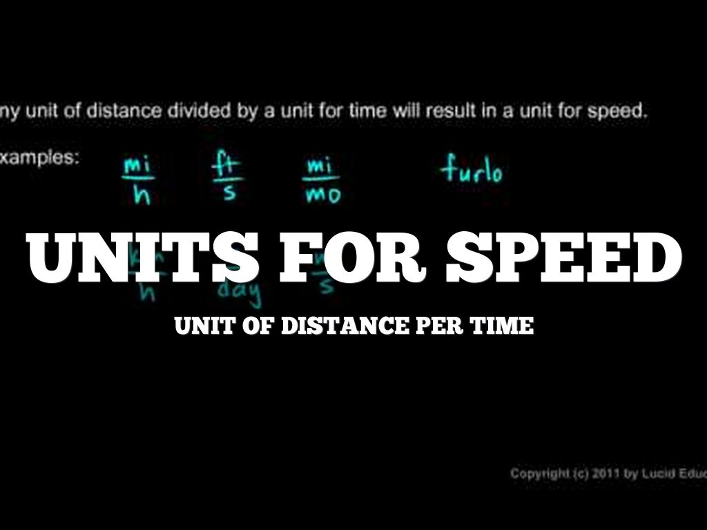 An example of a speed is 60 miles per hour, 15 meters/second. Both of these measurements have a size or magnitude which is the number and a unit.