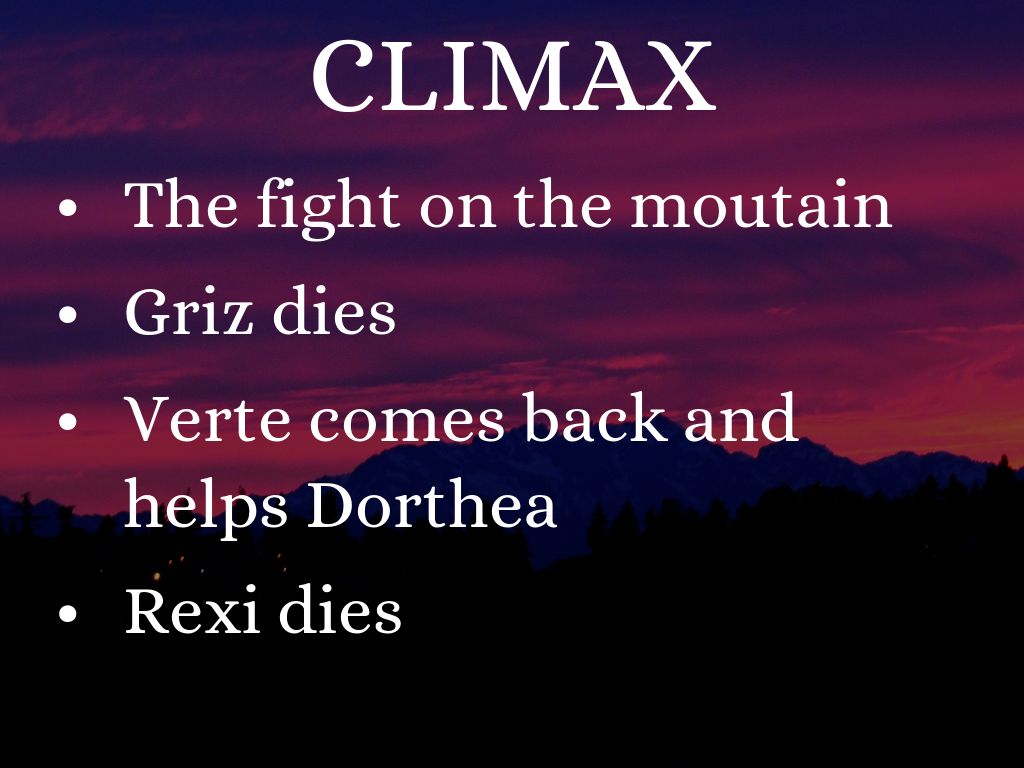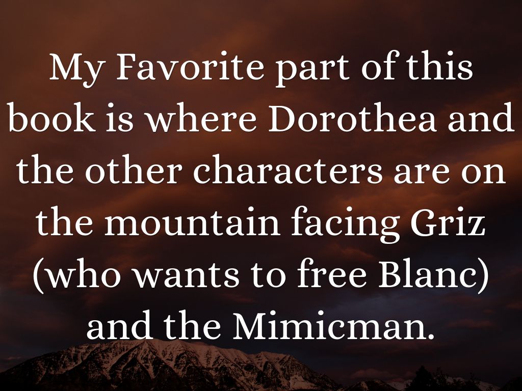 My Favorite part of this book is where Dorothea and the other characters are on the mountain facing Griz (who wants to free Blanc) and the Mimicman.