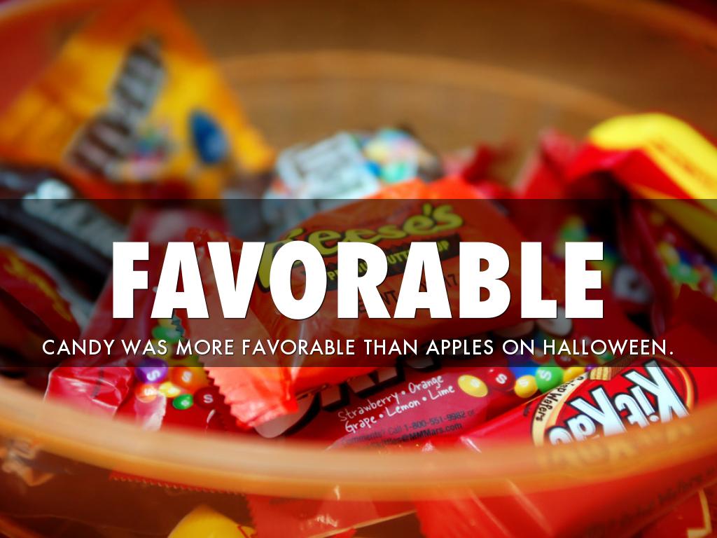 CANDY WAS MORE FAVORABLE THAN APPLES ON HALLOWEEN.