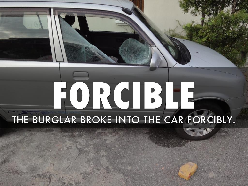 THE BURGLAR BROKE INTO THE CAR FORCIBLY.