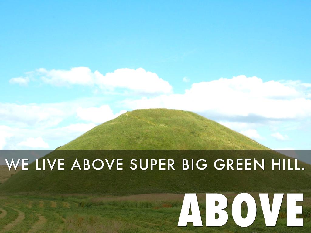 WE LIVE ABOVE SUPER BIG GREEN HILL.