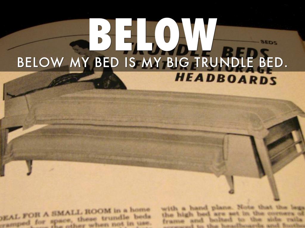 BELOW MY BED IS MY BIG TRUNDLE BED.