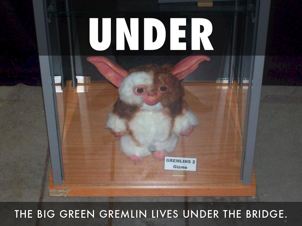 THE BIG GREEN GREMLIN LIVES UNDER THE BRIDGE.