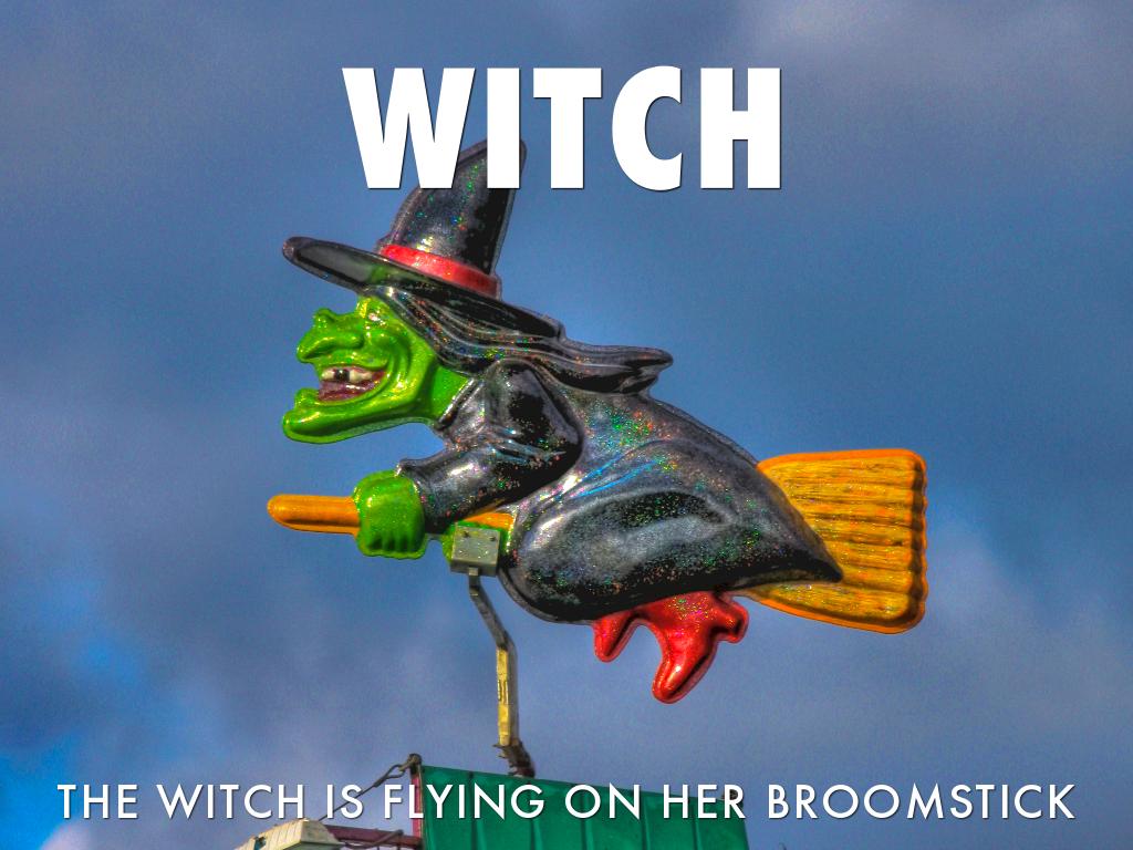 THE WITCH IS FLYING ON HER BROOMSTICK