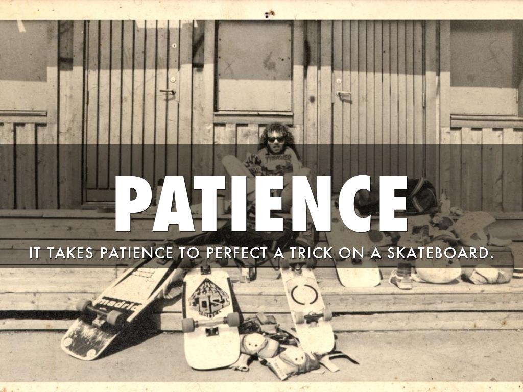IT TAKES PATIENCE TO PERFECT A TRICK ON A SKATEBOARD.