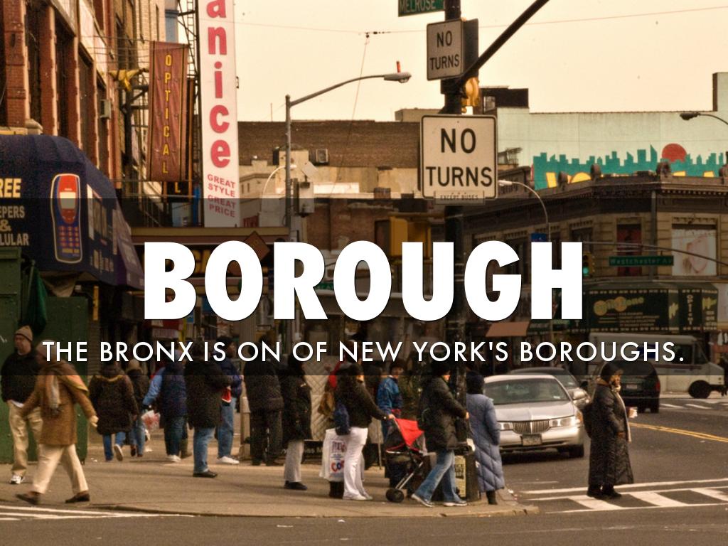 THE BRONX IS ON OF NEW YORK'S BOROUGHS.