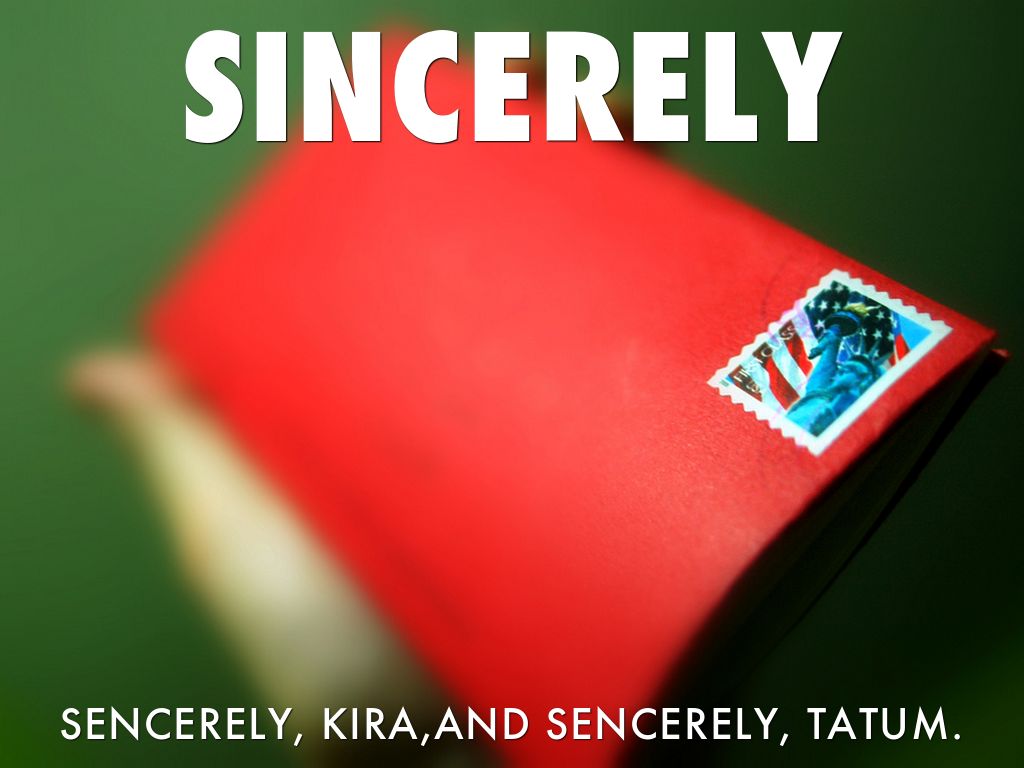 SENCERELY, KIRA,AND SENCERELY, TATUM.