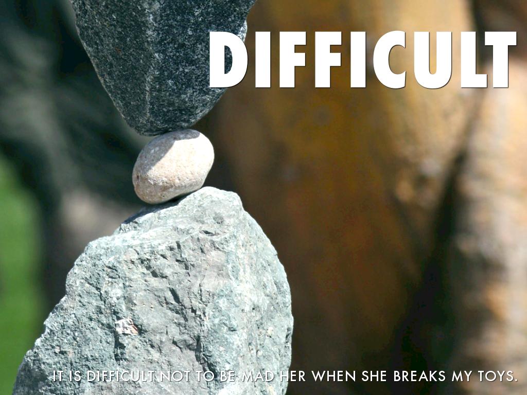 IT IS DIFFICULT NOT TO BE MAD HER WHEN SHE BREAKS MY TOYS.