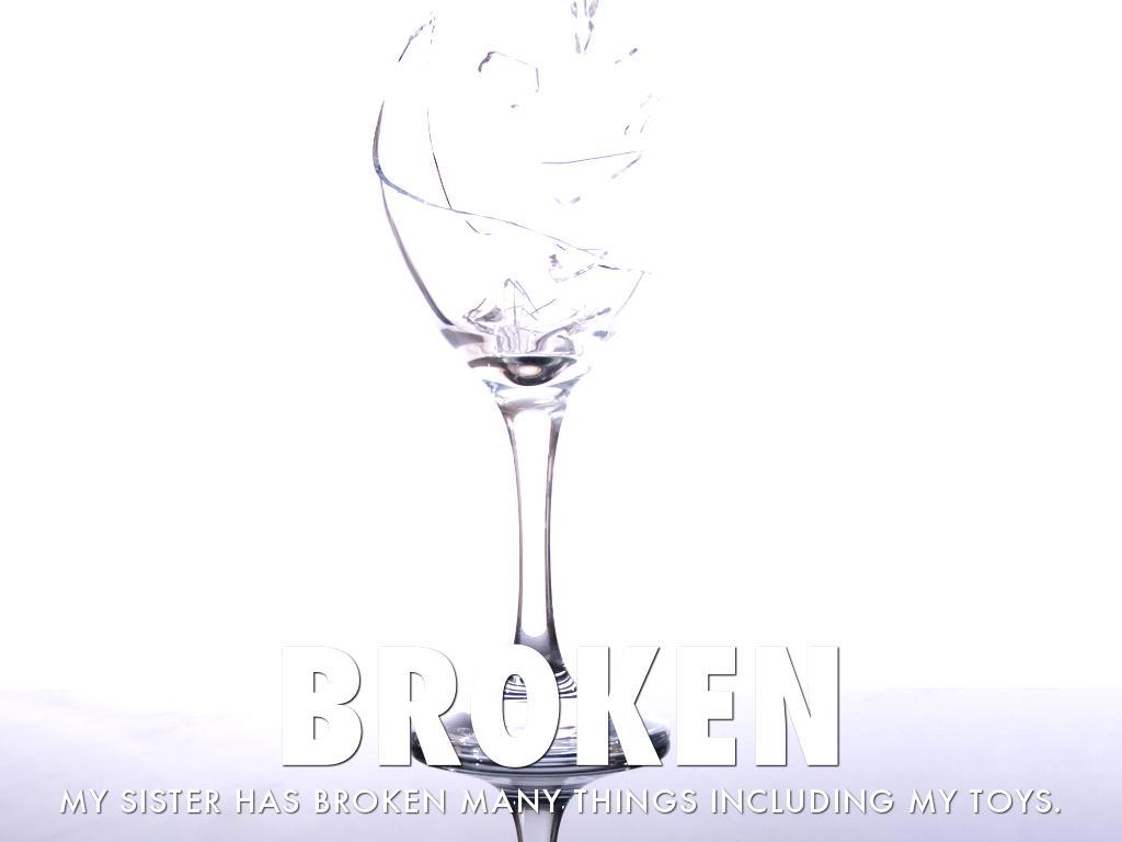 MY SISTER HAS BROKEN MANY THINGS INCLUDING MY TOYS.