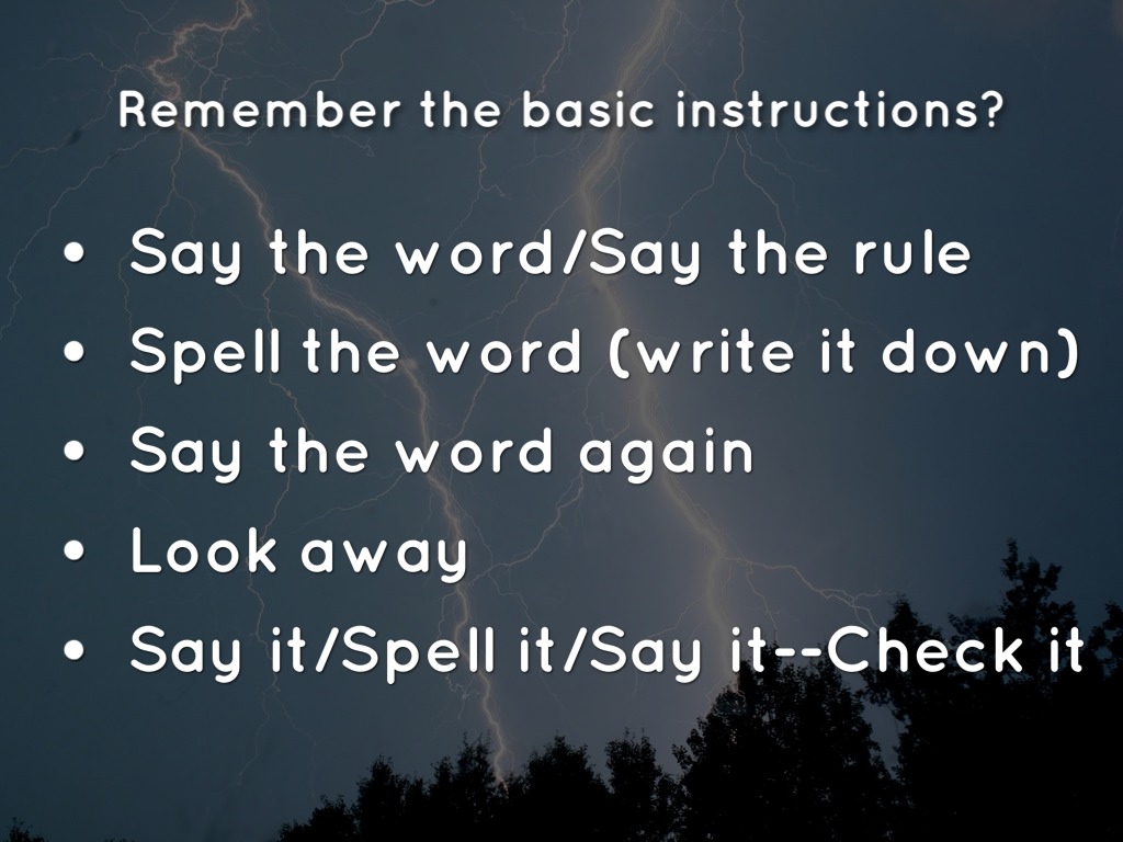 You will see slides with a spelling list word...