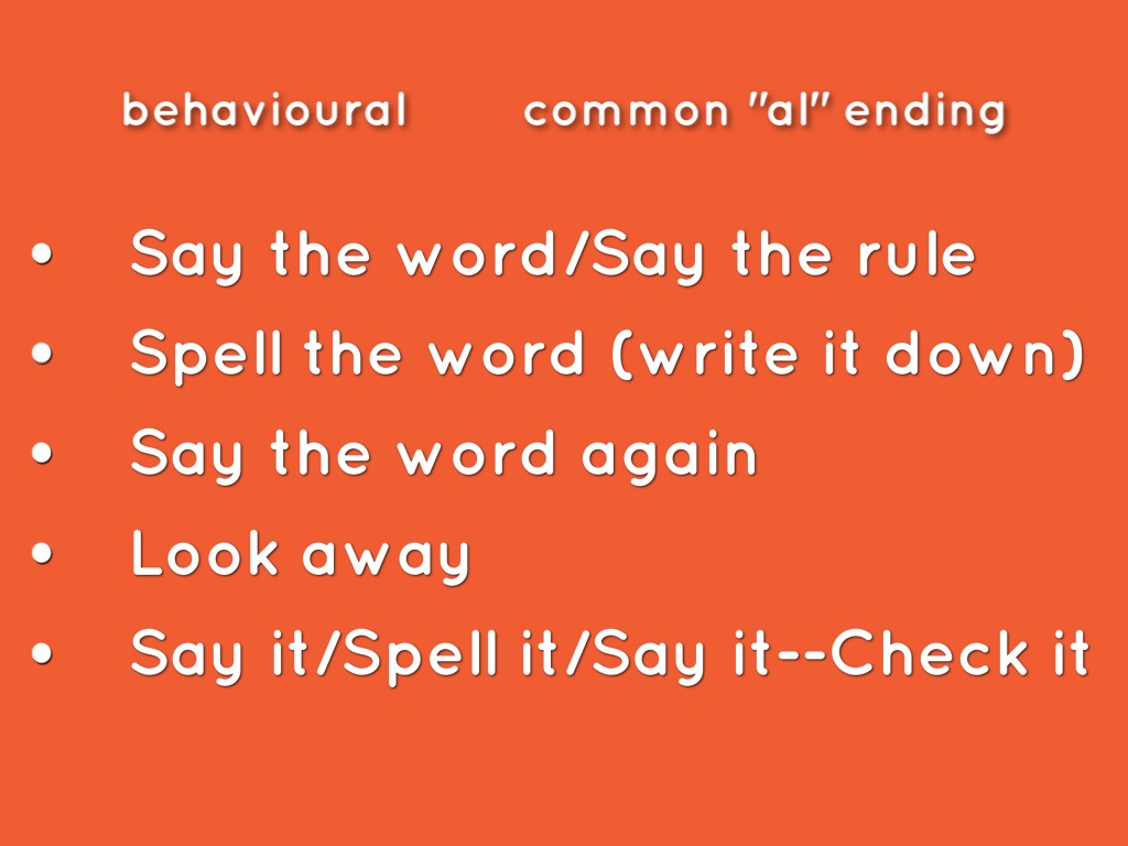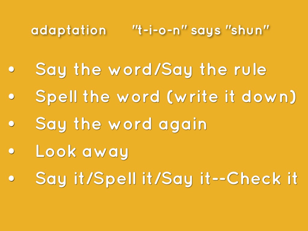 A) Looking at the screen, say the word out loud...notice the shape of the word, the number of letters, etc...then say the rule out loud...