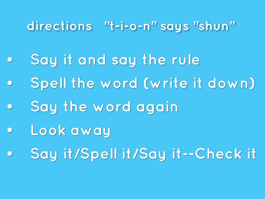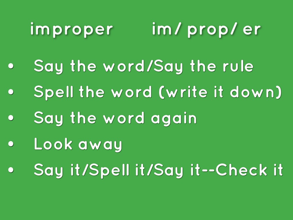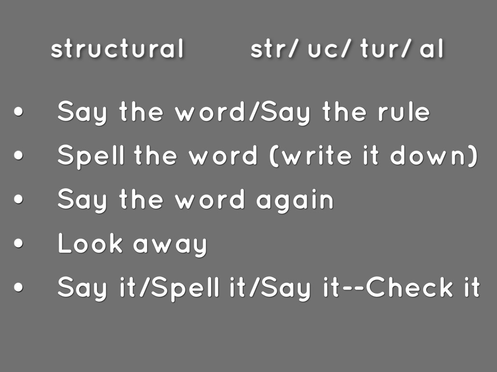 A) Looking at the screen, say the word out loud...notice the shape of the word, the number of letters, etc...then say the rule out loud...