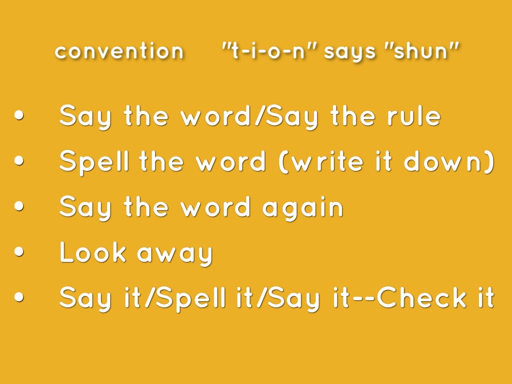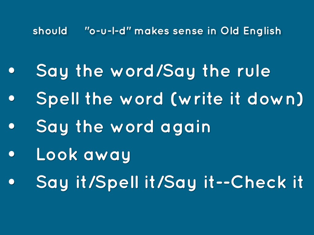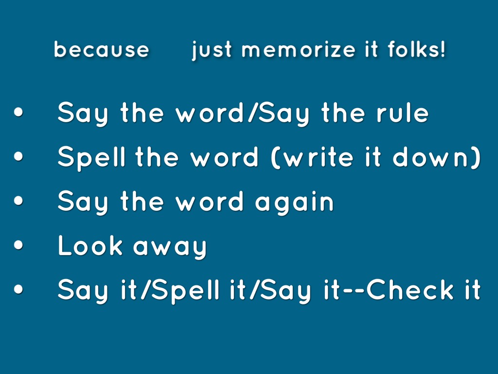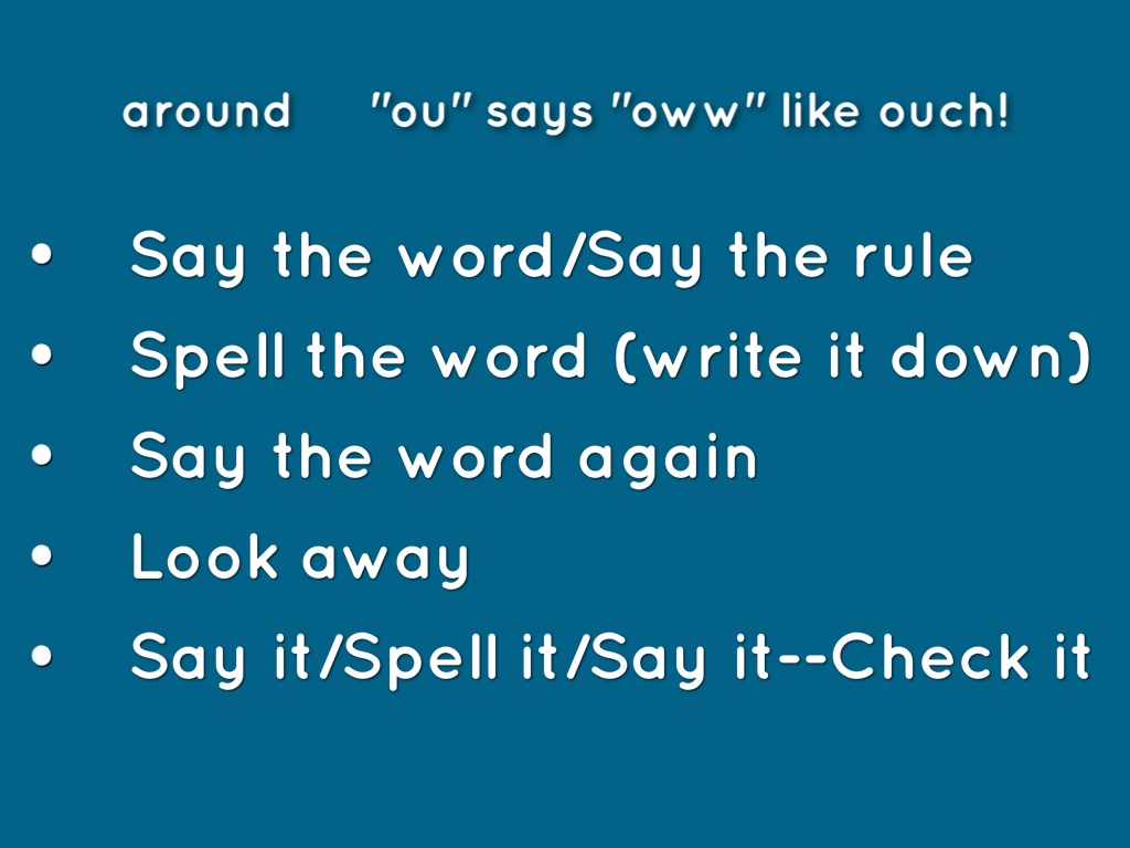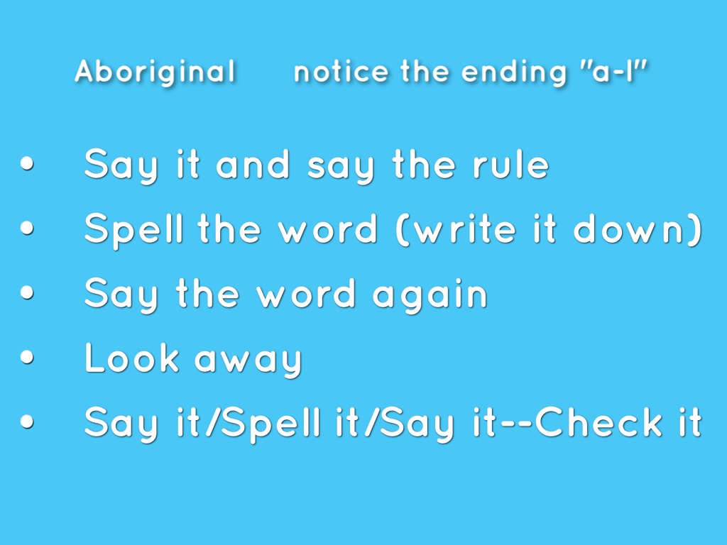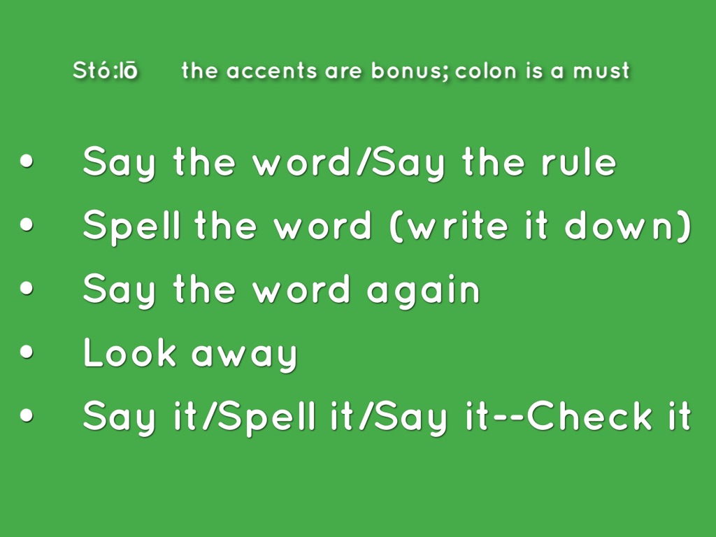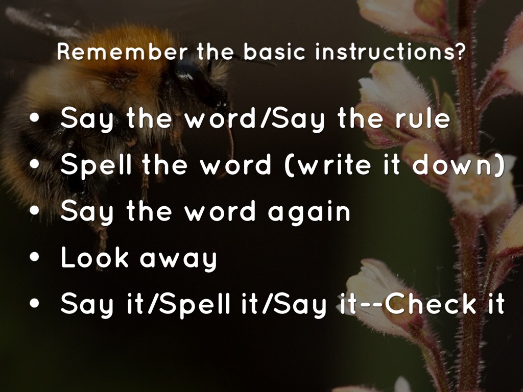 A) Looking at the screen, say the word out loud...notice the shape of the word, the number of letters, etc...then say the rule out loud...
