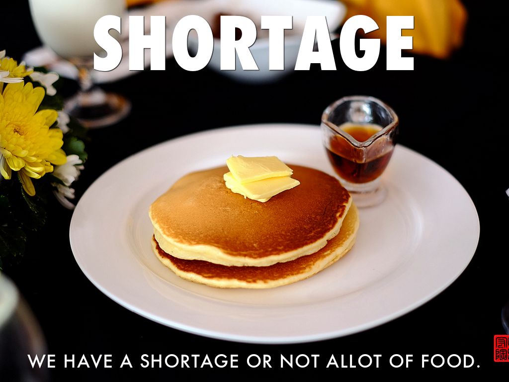 WE HAVE A SHORTAGE OR NOT ALLOT OF FOOD.