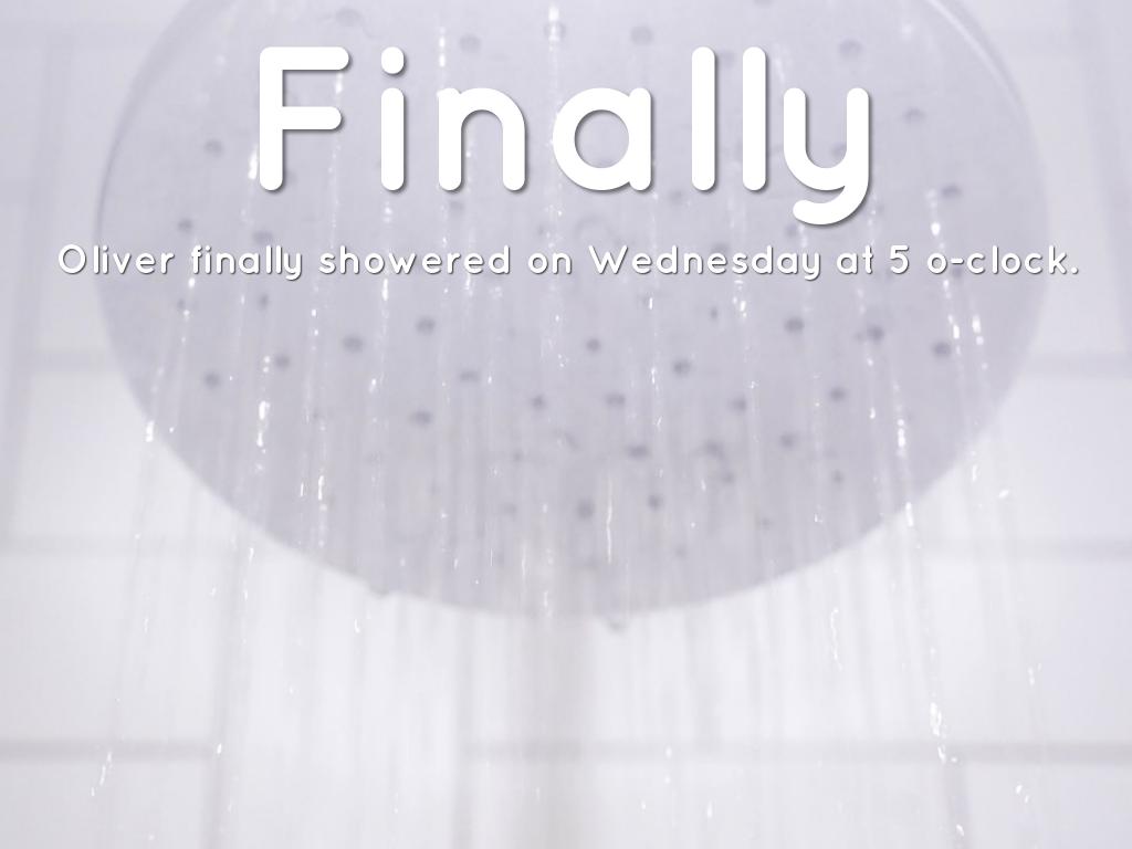 Oliver finally showered on Wednesday at 5 o-clock.