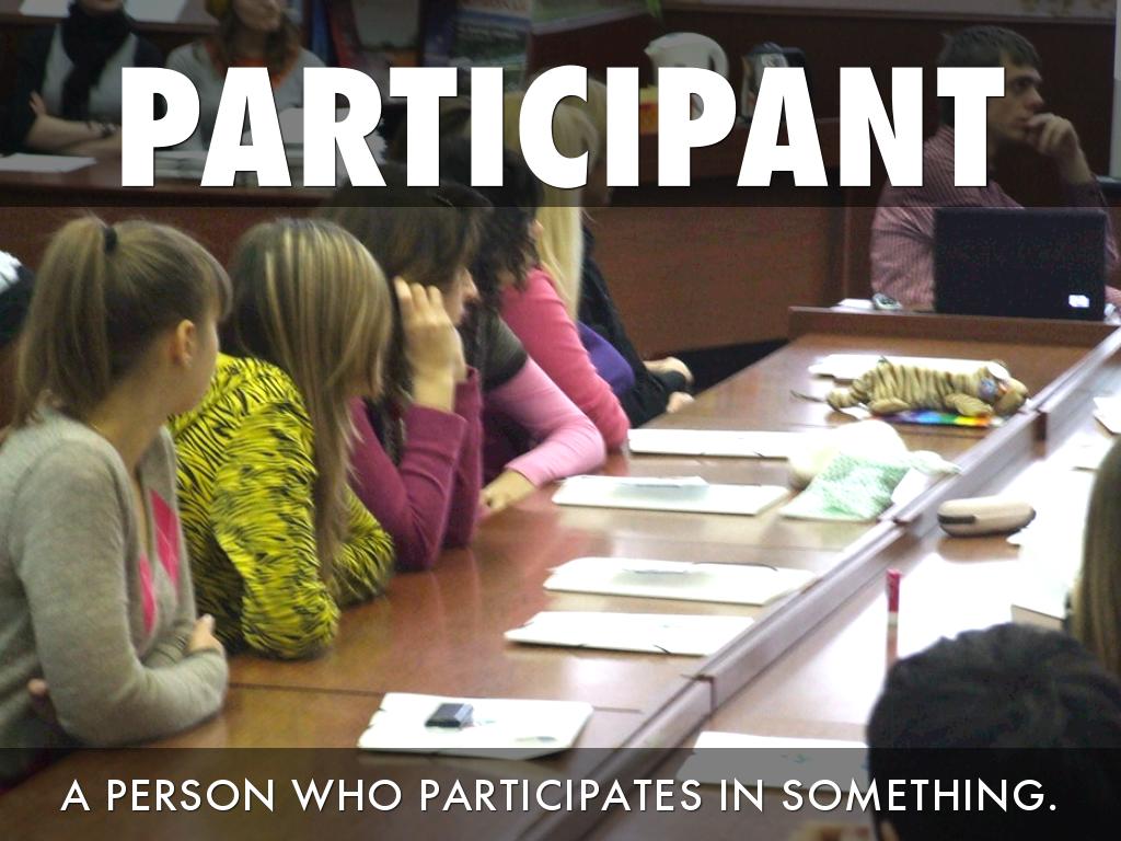 A PERSON WHO PARTICIPATES IN SOMETHING.