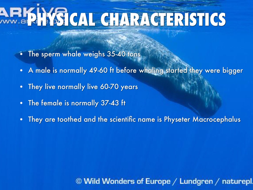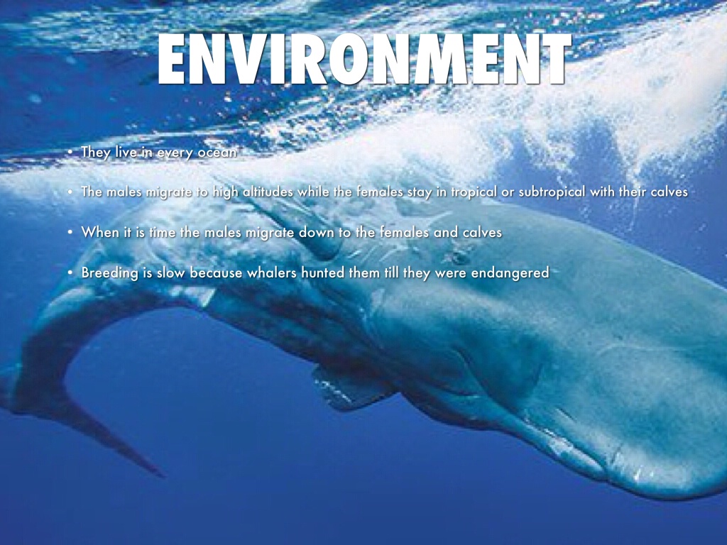 • Inside their head is a wax that is unkown for what it does for the sperm whale
