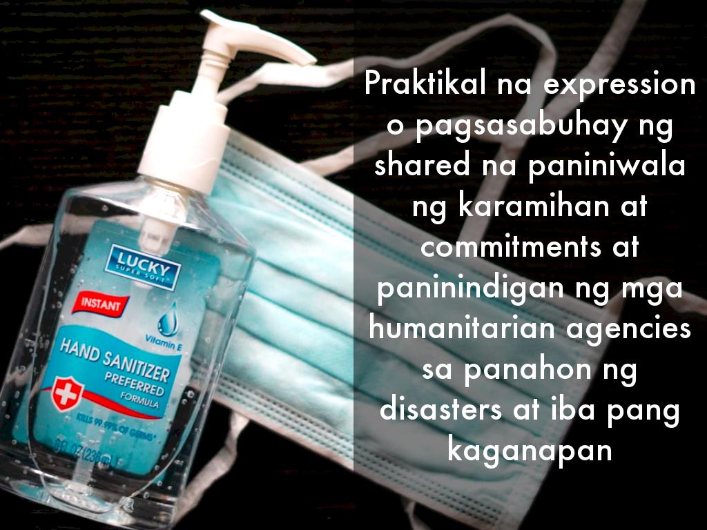 Praktikal na expression o pagsasabuhay ng shared na paniniwala ng karamihan at commitments at paninindigan ng mga humanitarian agencies sa panahon ng disasters at iba pang kaganapan