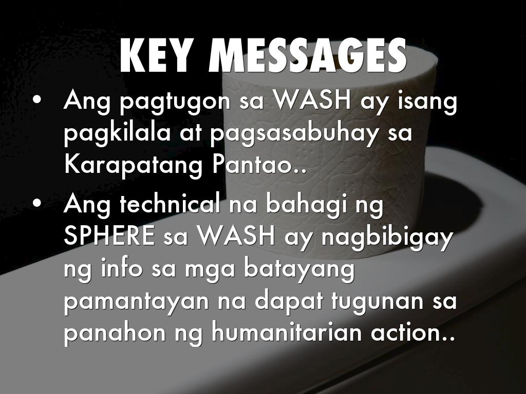 Ang technical na bahagi ng SPHERE sa WASH ay nagbibigay ng info sa mga batayang pamantayan na dapat tugunan sa panahon ng humanitarian action..