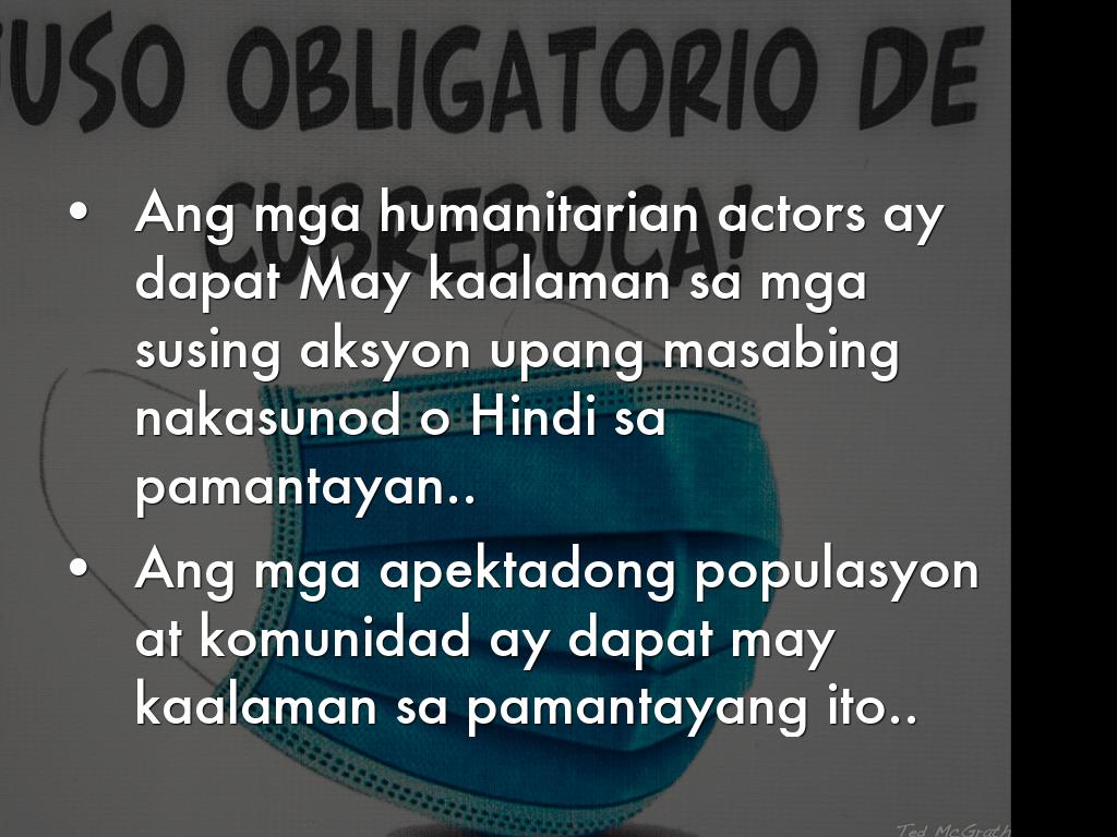 Ang mga humanitarian actors ay dapat May kaalaman sa mga susing aksyon upang masabing nakasunod o Hindi sa pamantayan..