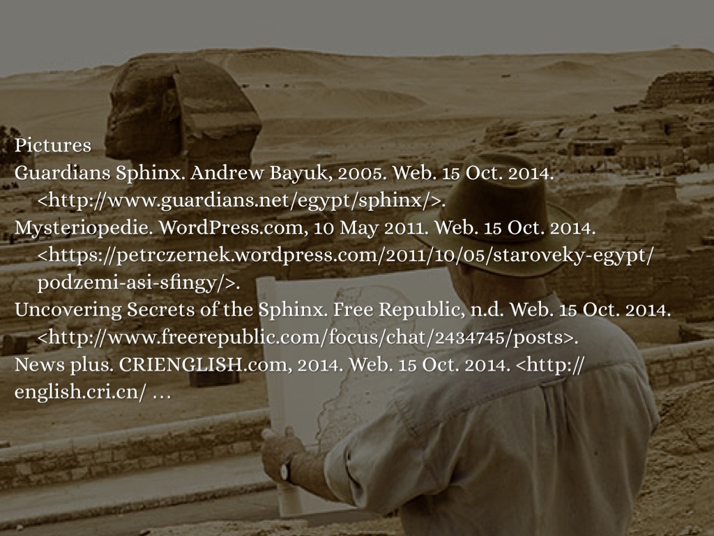 Uncovering the Secrets of the Sphinx. SevenSkins, 2014. Web. 15 Oct. 2014.