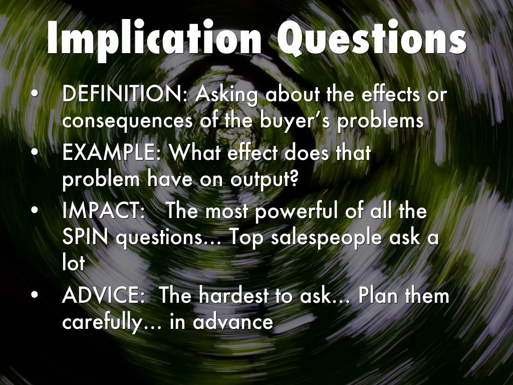 DEFINITION: Asking about the effects or consequences of the buyer’s problems
