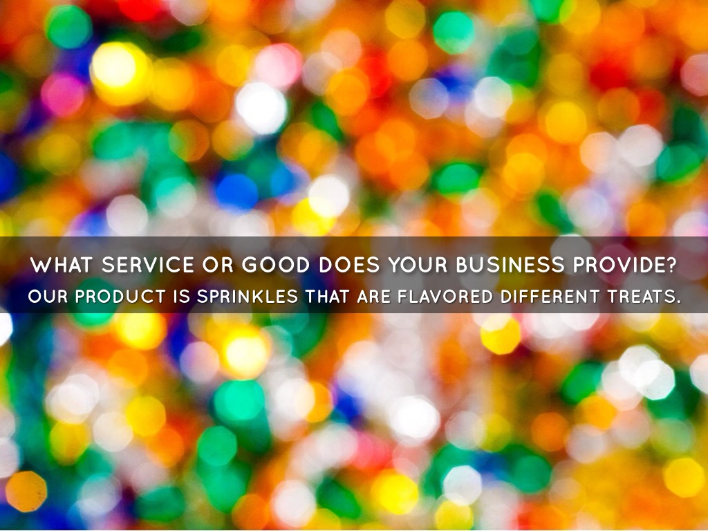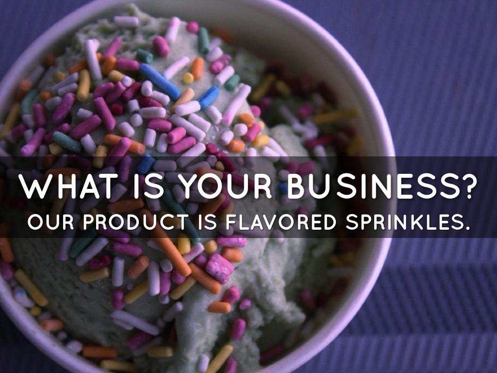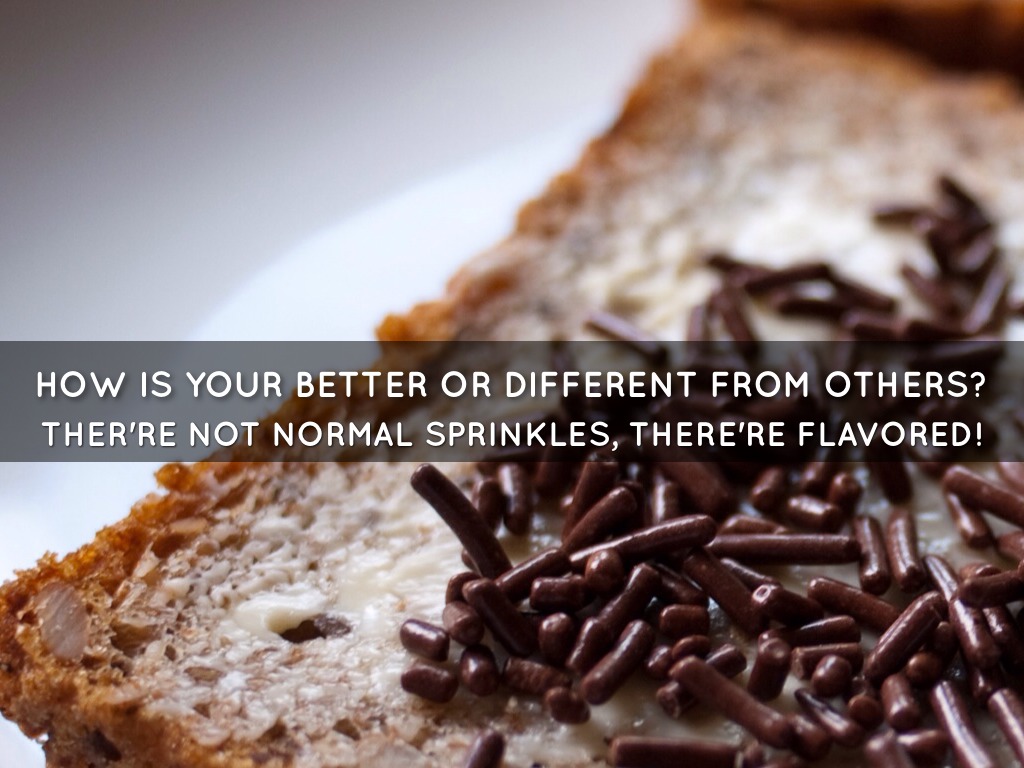 OUR PRODUCT IS SPRINKLES THAT ARE FLAVORED DIFFERENT TREATS.