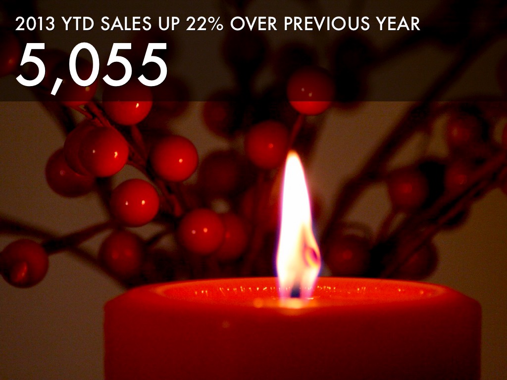2013 YTD SALES UP 22% OVER PREVIOUS YEAR