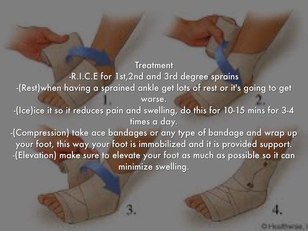 -(Rest)when having a sprained ankle get lots of rest or it's going to get worse.