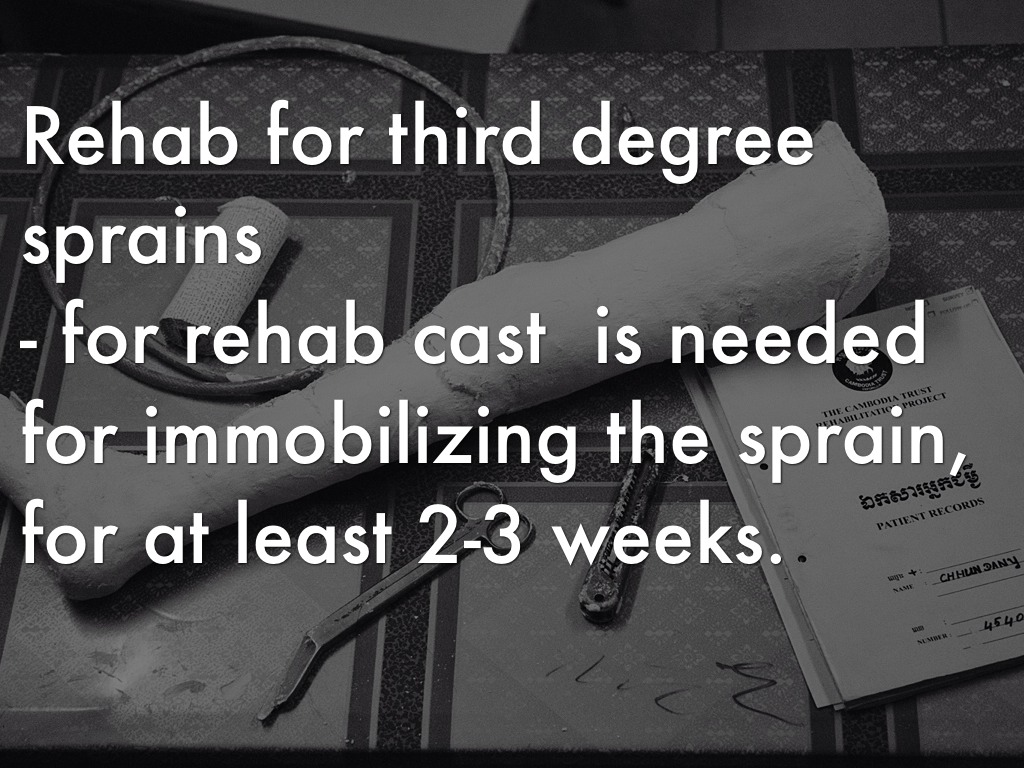 - for rehab cast is needed for immobilizing the sprain, for at least 2-3 weeks.
