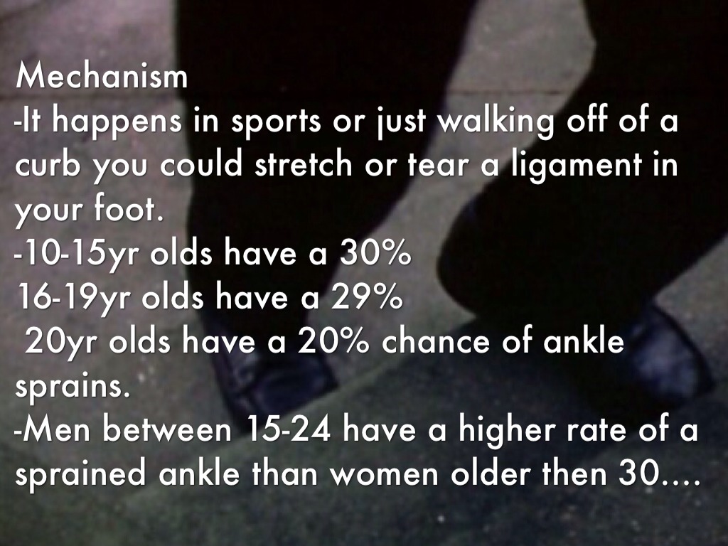 -Men between 15-24 have a higher rate of a sprained ankle than women older then 30.