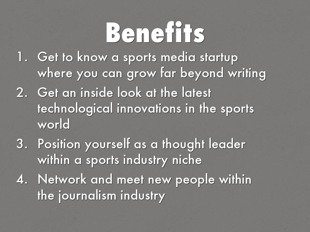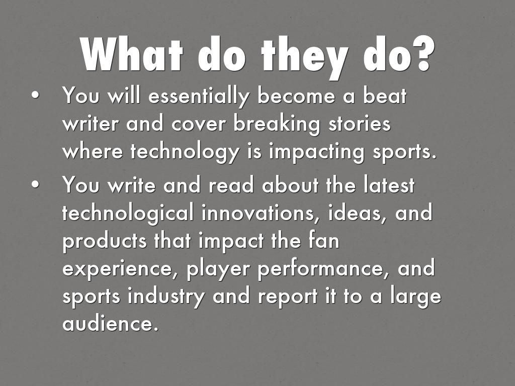 - You will essentially become a beat writer and cover breaking stories where technology is impacting sports.