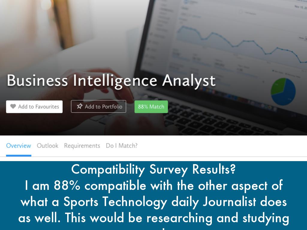 I am 88% compatible with the other aspect of what a Sports Technology daily Journalist does as well. This would be researching and studying sports data.