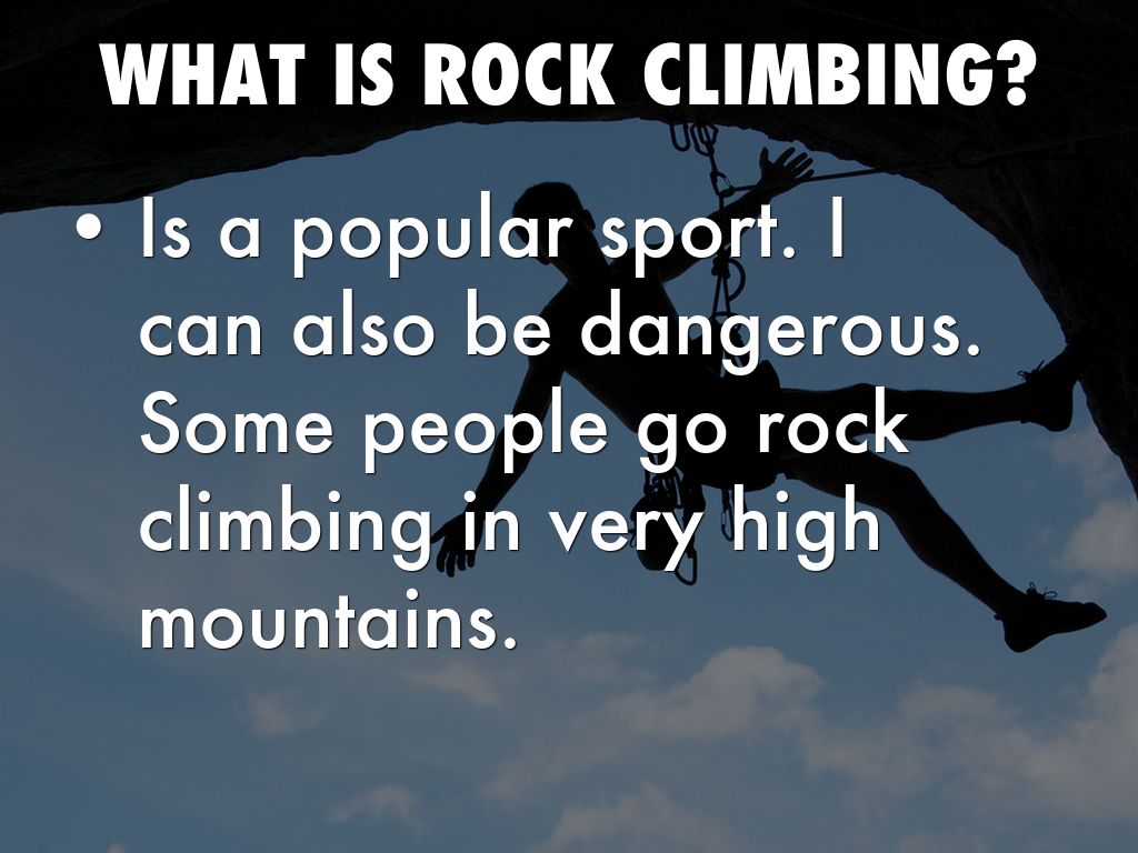 Is a popular sport. I can also be dangerous. Some people go rock climbing in very high mountains.