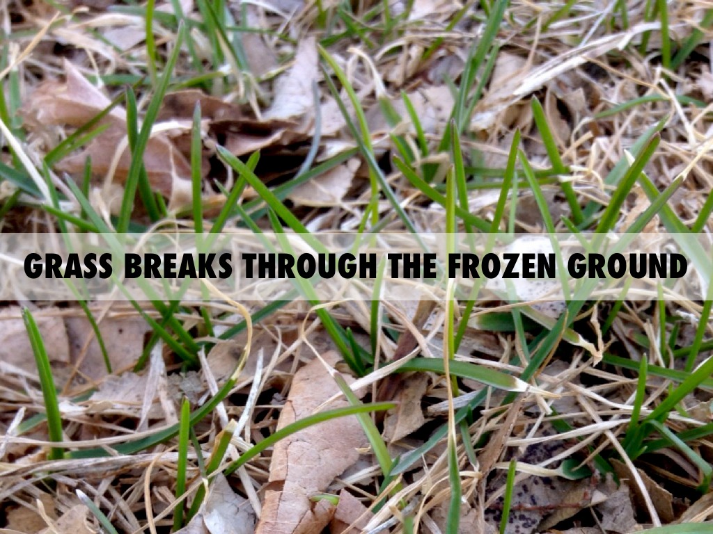 GRASS BREAKS THROUGH THE FROZEN GROUND