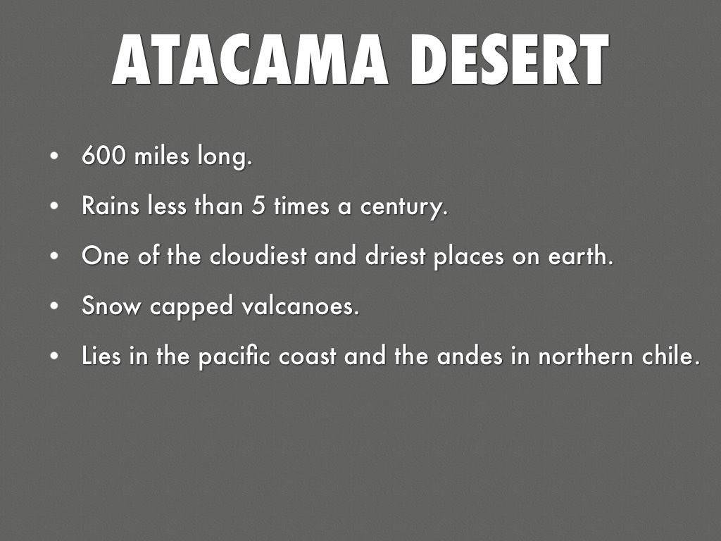 Runs through Ecuador,Peru,Bolivia,and Chile.