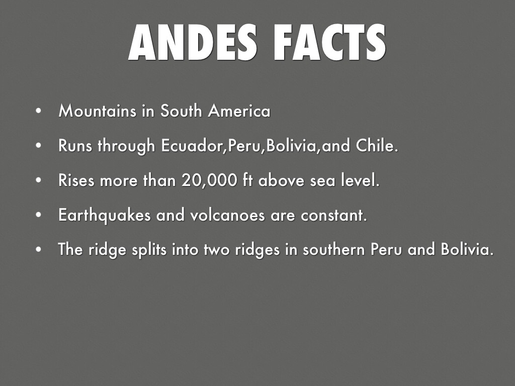 The ridge splits into two ridges in southern Peru and Bolivia.