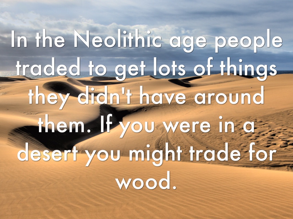 In the Neolithic age people used agriculture which is the domestication of animals and farming. They did this in all Neolithic settlements by planting stuff and using animals for things. They used sheep goats and cattle.