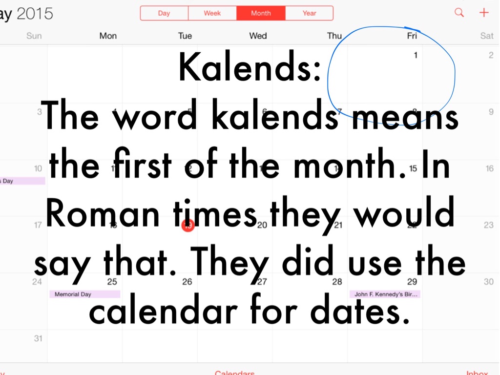 The word kalends means the first of the month. In Roman times they would say that. They did use the calendar for dates.