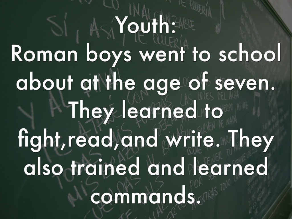 Roman boys went to school about at the age of seven. They learned to fight,read,and write. They also trained and learned commands.