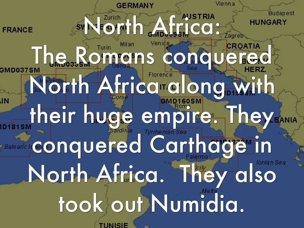 The Romans conquered North Africa along with their huge empire. They conquered Carthage in North Africa. They also took out Numidia.