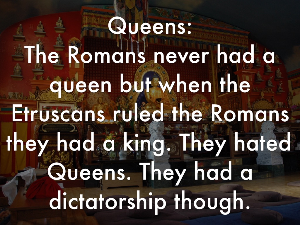 The Romans never had a queen but when the Etruscans ruled the Romans they had a king. They hated Queens. They had a dictatorship though.
