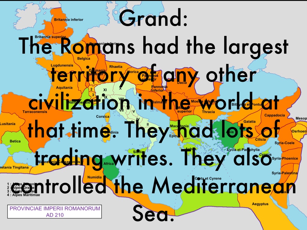 The Romans had the largest territory of any other civilization in the world at that time. They had lots of trading writes. They also controlled the Mediterranean Sea.