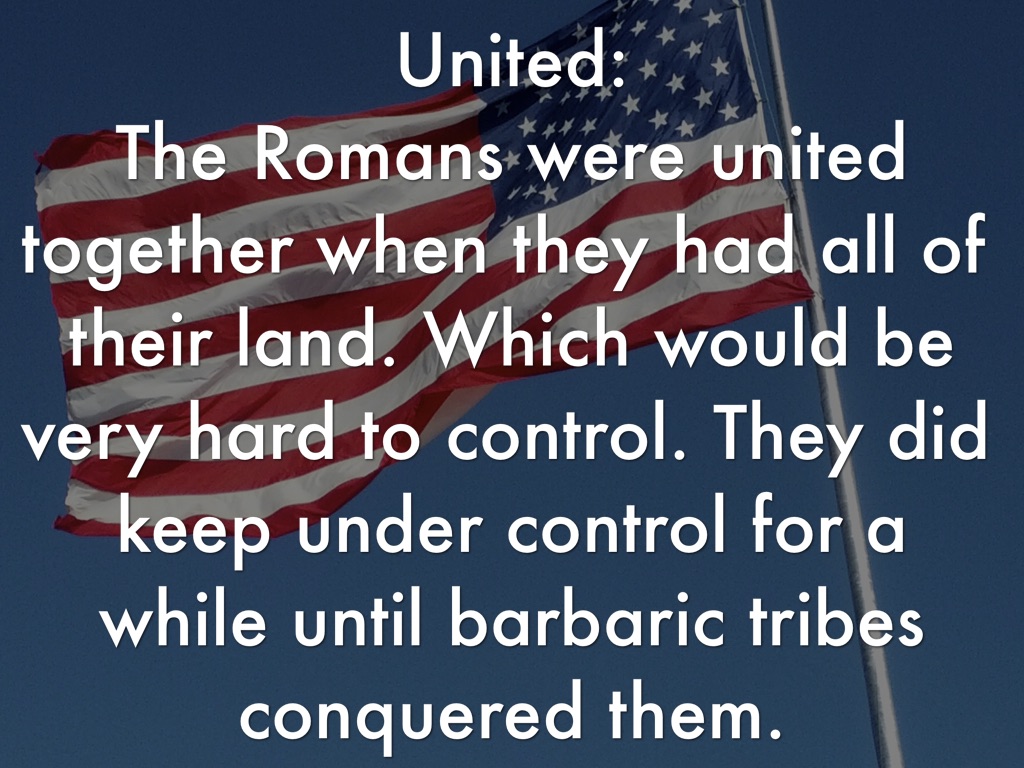 The Romans were united together when they had all of their land. Which would be very hard to control. They did keep under control for a while until barbaric tribes conquered them.