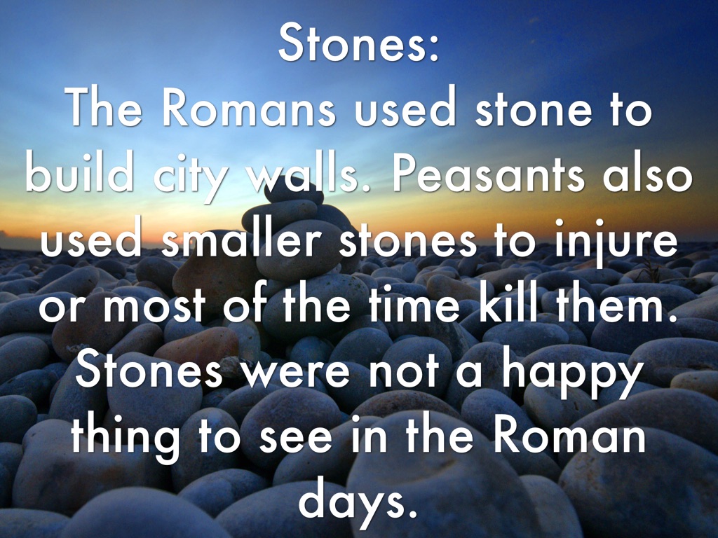 The Romans used stone to build city walls. Peasants also used smaller stones to injure or most of the time kill them. Stones were not a happy thing to see in the Roman days.