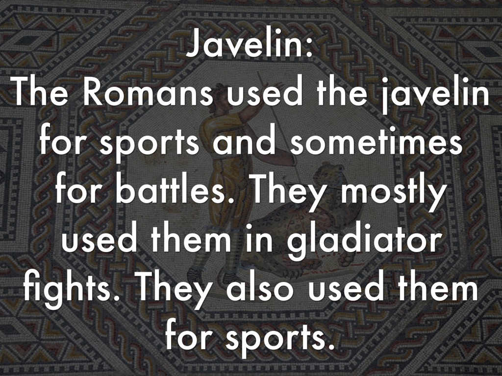 The Romans used the javelin for sports and sometimes for battles. They mostly used them in gladiator fights. They also used them for sports.