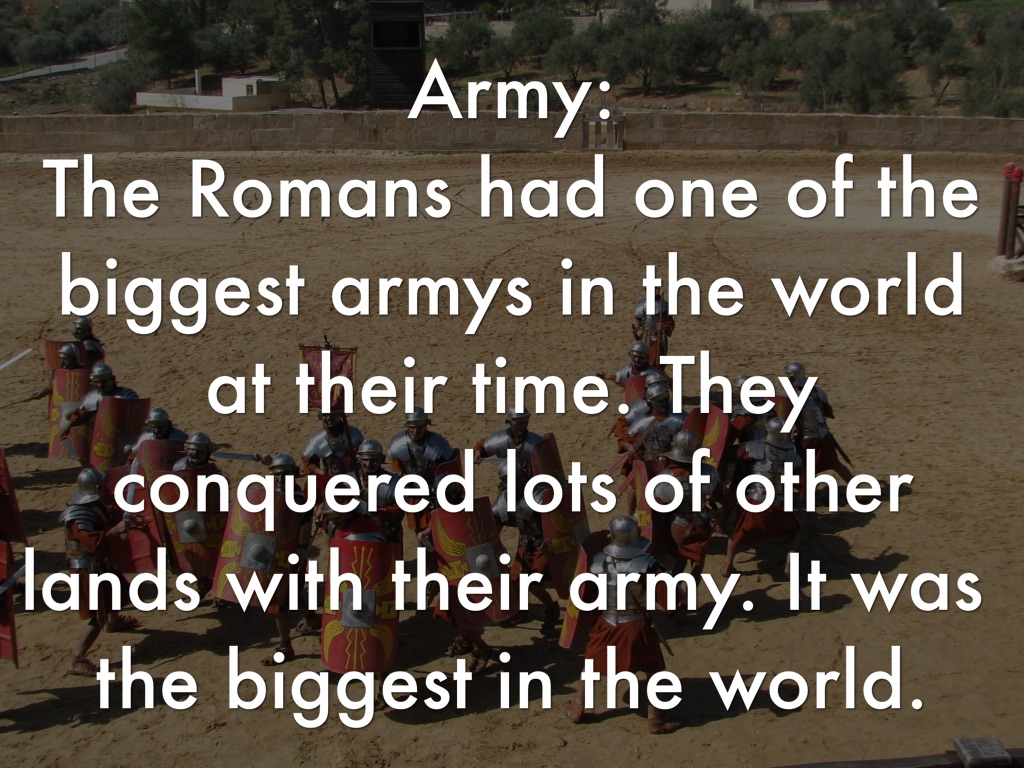 The Romans had one of the biggest armys in the world at their time. They conquered lots of other lands with their army. It was the biggest in the world.